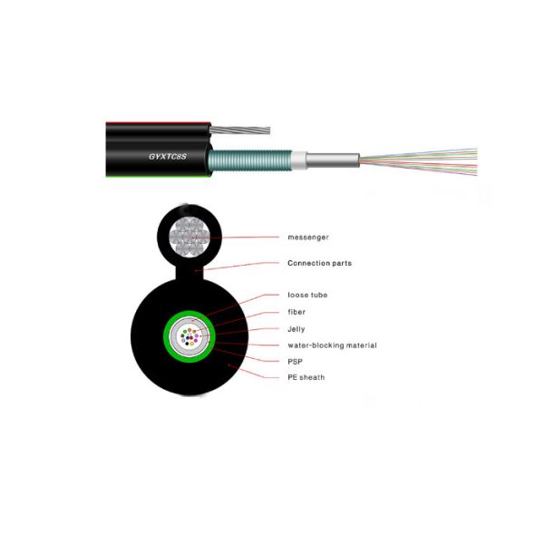 GYXTC8S fiber optic cable is a figure 8 structure cable suitable for installation in aerial environment for long haul communications. This optical cable is 2cores to 24 cores types available.